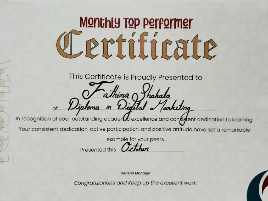 welcome to my digital world , I’m Fathima shahala Digital Marketing strategist and SMM Expert. I am BA english graduated from university of calicut. then i start to studying Diploma in Digital Marketing at IQJITA Kottakkal. My mission is scale up business through social media.